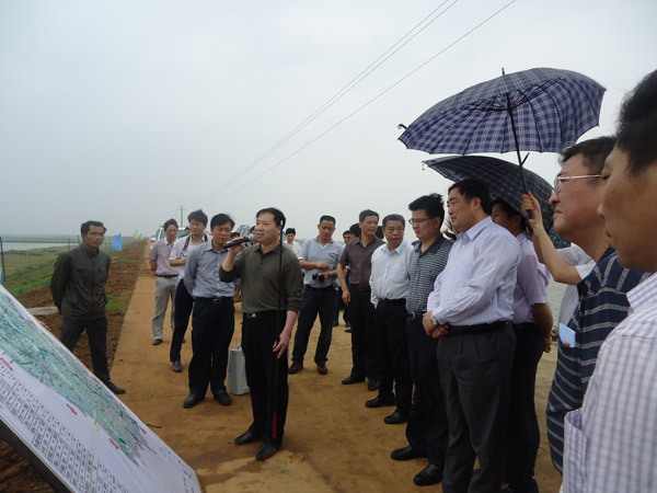 当天一大早,董力一行搭船从星子县出发赶赴余干县。在康山大堤锣鼓山码头上岸后,先厥后到我司承建完工的锣鼓山排涝泵站革新工程和康山3标工地康山蓄滞洪区分洪门施工段(KS20+500),并在分洪门施工段(KS20+500)听取了余干县水利部分的有关情况汇报。在看到康山大堤除险加固工程已进入扫尾阶段,大堤堤面宽阔,董力体现满意。