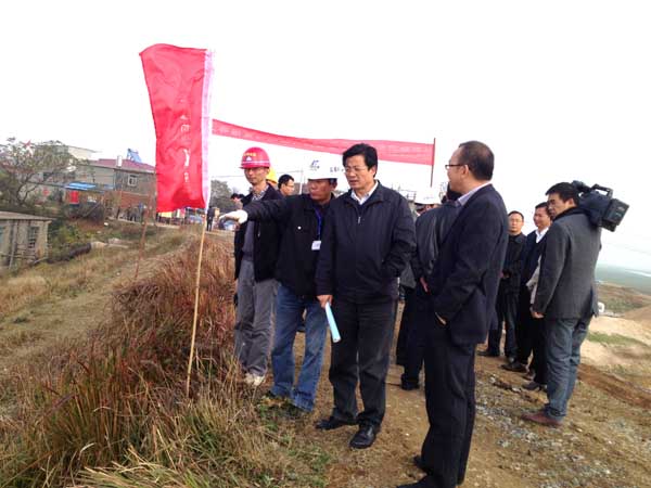 九江市副市长赵伟一行到我公司承建的星子县蛟塘防洪工程检查指导事情