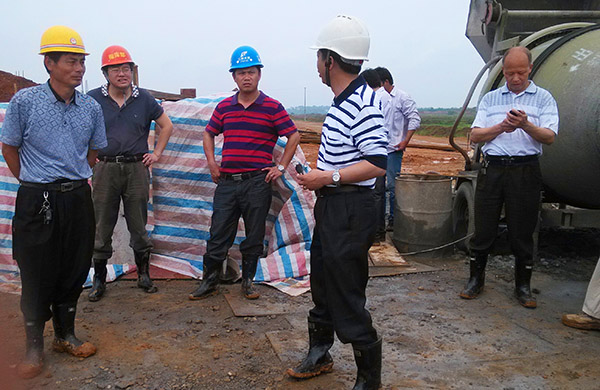 吴义泉总指挥现场检察舍边电排站副厂房施工