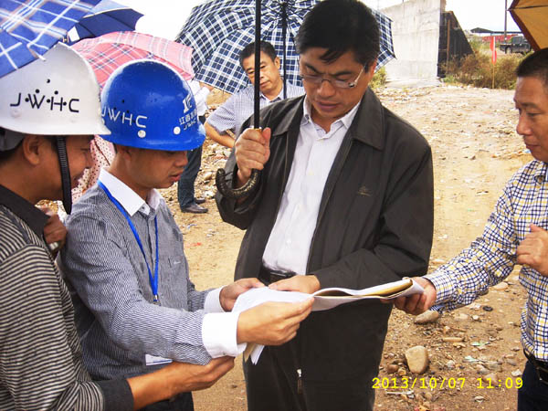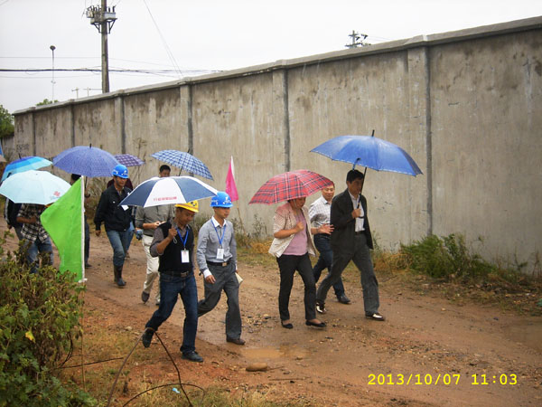 孙厅长一下车直奔工地施工现场,并主动与现场施工人员握手。当走到防洪墙施工现场时,孙厅长停住脚步,听取完施工情况汇报后,他对驻守在施工现场的参建各单位及个人体现问候,祝各人国庆节日快乐,他要求各单位再接再厉,按省五河办的相关安排确保按期完工。最后,孙厅长要求各单位把好质量和宁静关,确保工程完工不出任何事故。