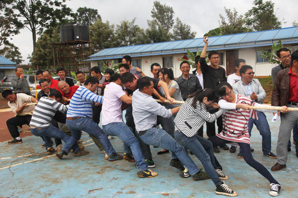 为了凝聚精神,交流情感,2014年12月25日,肯尼亚分公司第一届迎新联谊会在双河正式举办。本次联谊会共设拔河、篮球、CS三项团体角逐项目,乒乓球、象棋、升级三项个人角逐项目及趣味套圈项目,肯尼亚效劳处及各在建项目均组队加入了角逐。