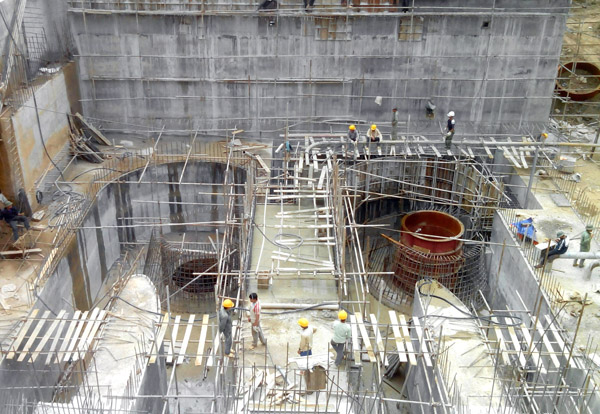 南化二级水电站水轮发电机组底座进入浇筑环节