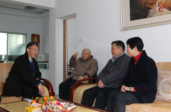 1月22日,省水利厅党委书记、厅长罗小云率姚毅臣副厅长、厅机关党委书记占任生前往公司亲切看望慰问离休老干部,公司董事长王元旦等陪同慰问。