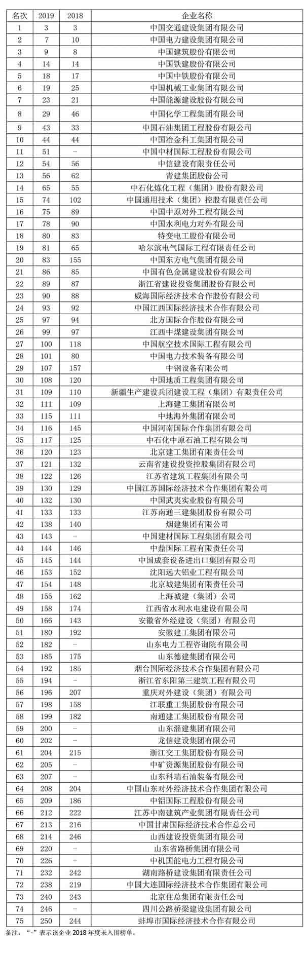 8月22日,2019年度美国《工程新闻纪录(ENR)》“全球250家国际承包商”榜单揭晓。