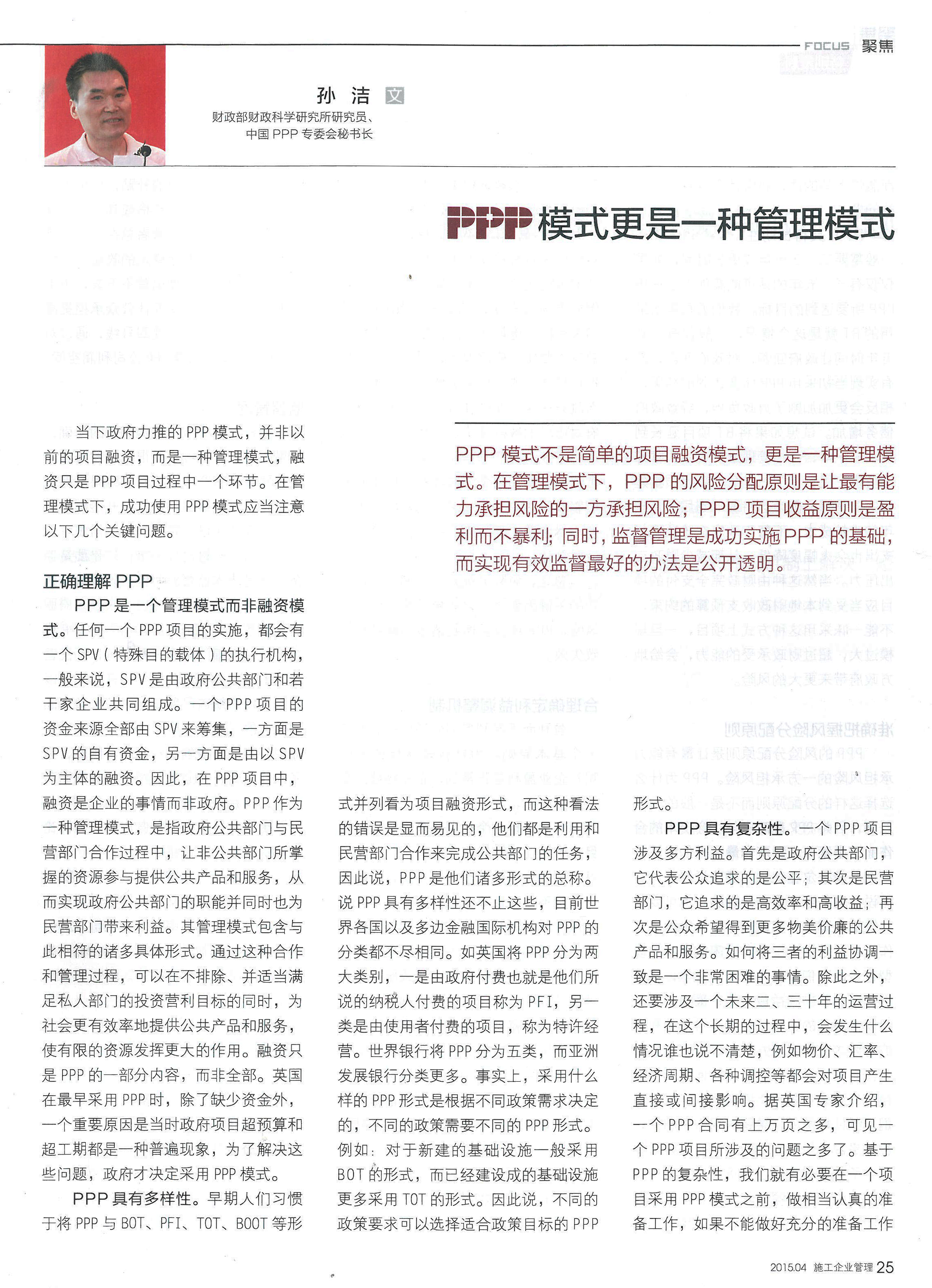 PPP模式:更是一种治理模式