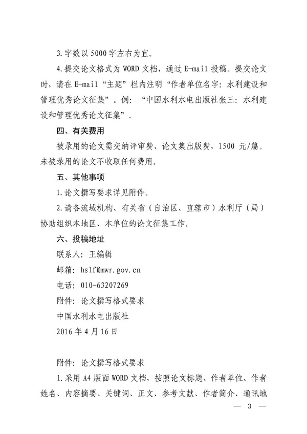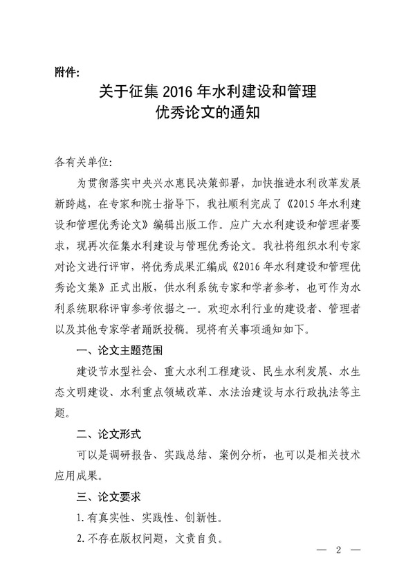 转发征集2016年水利建设和治理优秀论文的通知